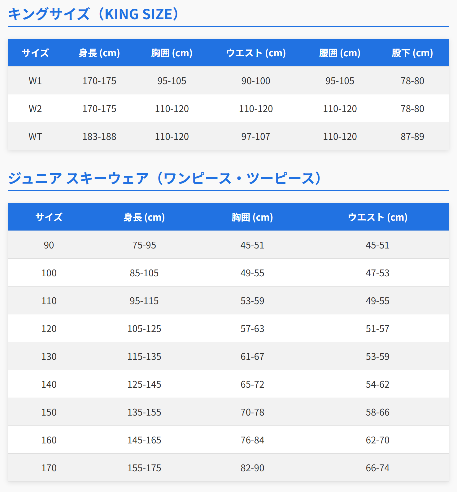 | サイズ | 身長 (cm) | チェスト (cm) | ウエスト (cm) |